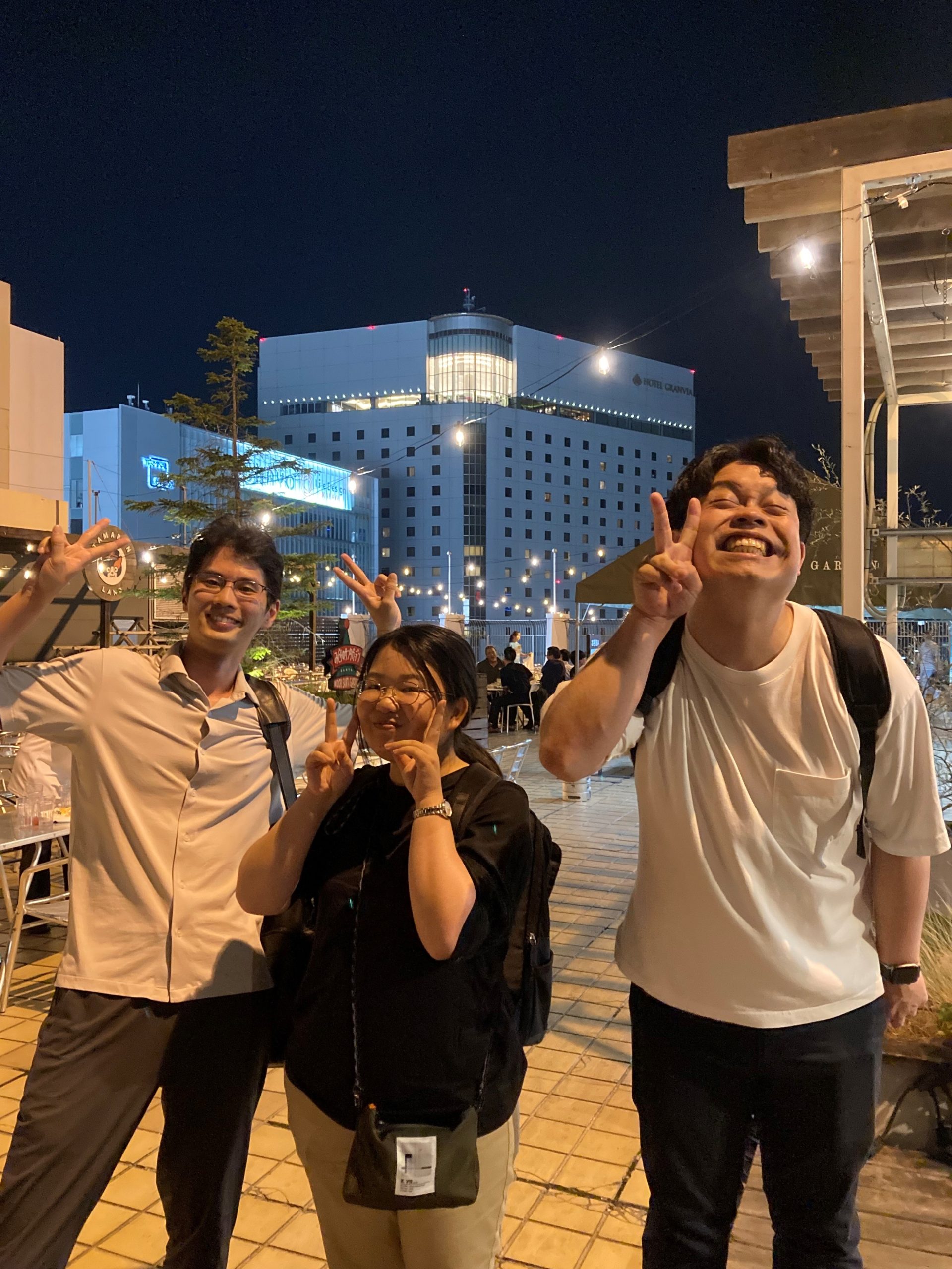 会社の仲間で、高島屋の屋上ビアガーデンからホテルグランヴィア岡山を背景に撮影した「笑顔」の写真。夏になるとホテルの部屋から高島屋の屋上ビアガーデンが見えて誘われます。ホテルグランヴィア岡山と高島屋は、「岡山」駅前で私たちを「笑顔」にしてくれる大切な場所です。