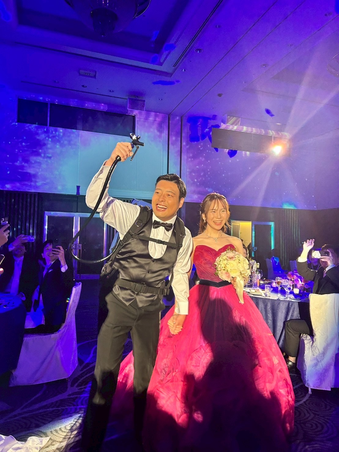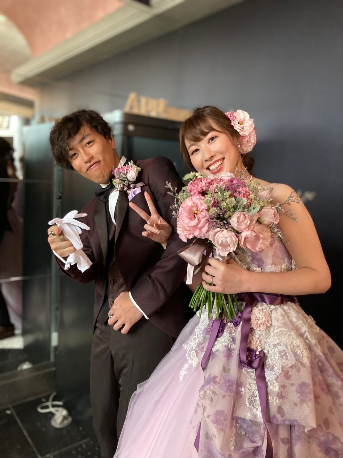 結婚式の披露宴でお色直し後の入場前にスタッフの霜山さんにパシャリと撮っていただきました!