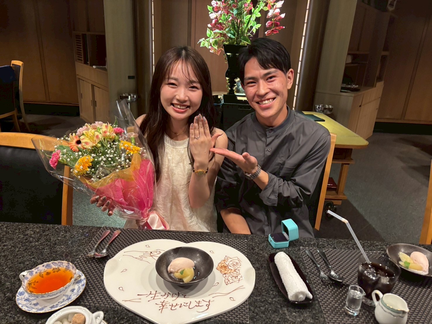 彼女とお付き合いして3ヶ月でのプロポーズだったため、とても緊張しましたが、アプローズのスタッフの皆様の心配りやお店の雰囲気に背中を押され、笑顔の中で無事にプロポーズを成功させることができました。ホテルグランヴィア岡山は、私たちにとって人生の中で特別な場所になりました。今でも近くを通るたびに、「ここでプロポーズしたんだなぁ」と、あの時の思い出が温かく蘇ってきます。