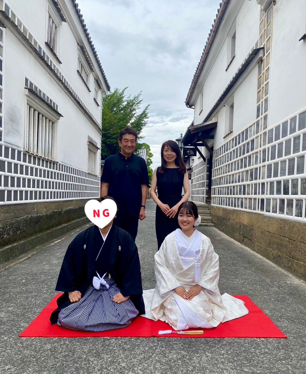 共に過ごした「岡山」の名所、倉敷美観地区にて、新しい家族を迎え「笑顔」で記念写真。