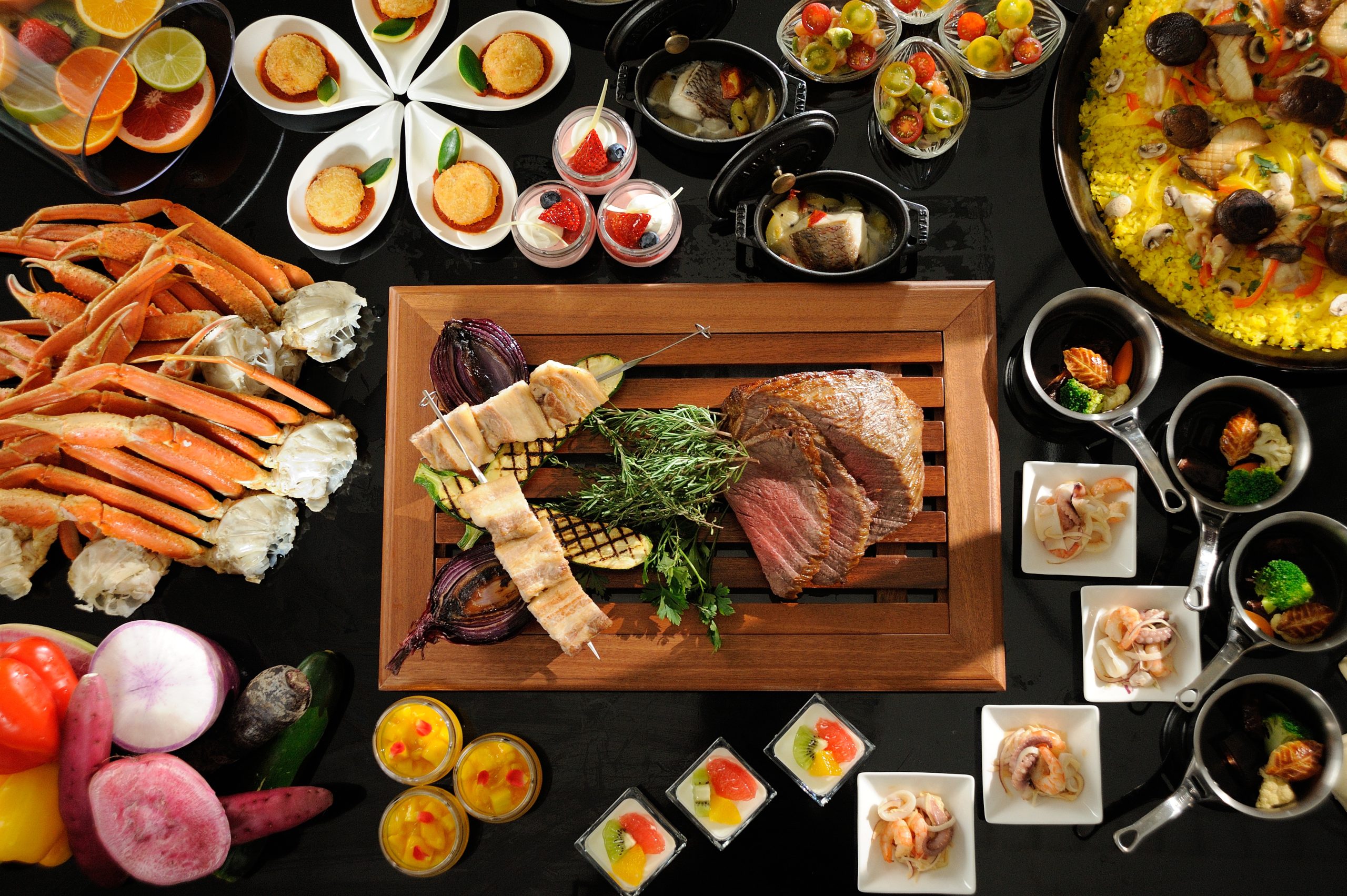 香ばしいステーキに、湯気立つズワイ蟹、職人が目の前で握る寿司など、豪華メインが勢ぞろい。