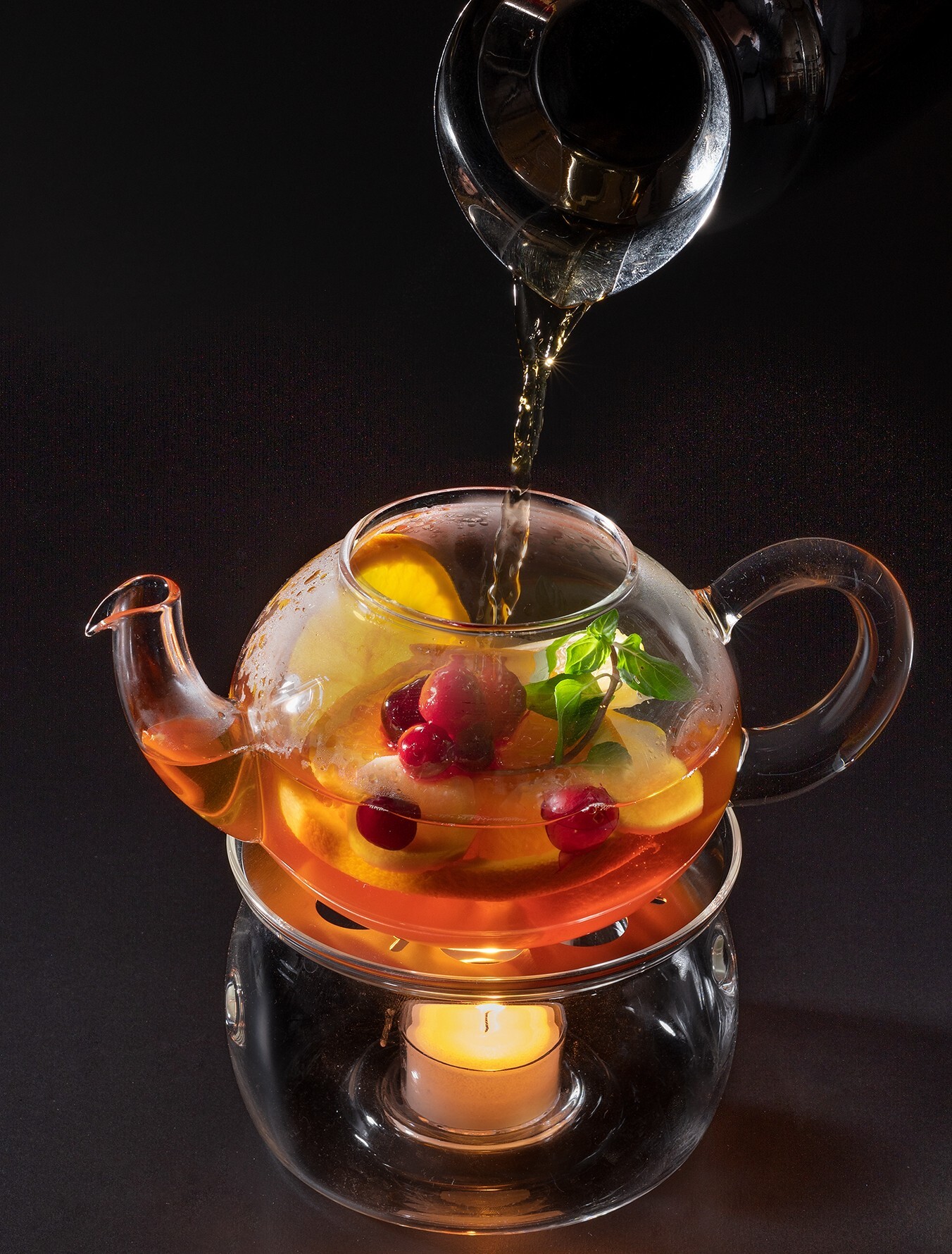 を注いだフルーツティー。アガベシロップでほんのり甘さをプラス。