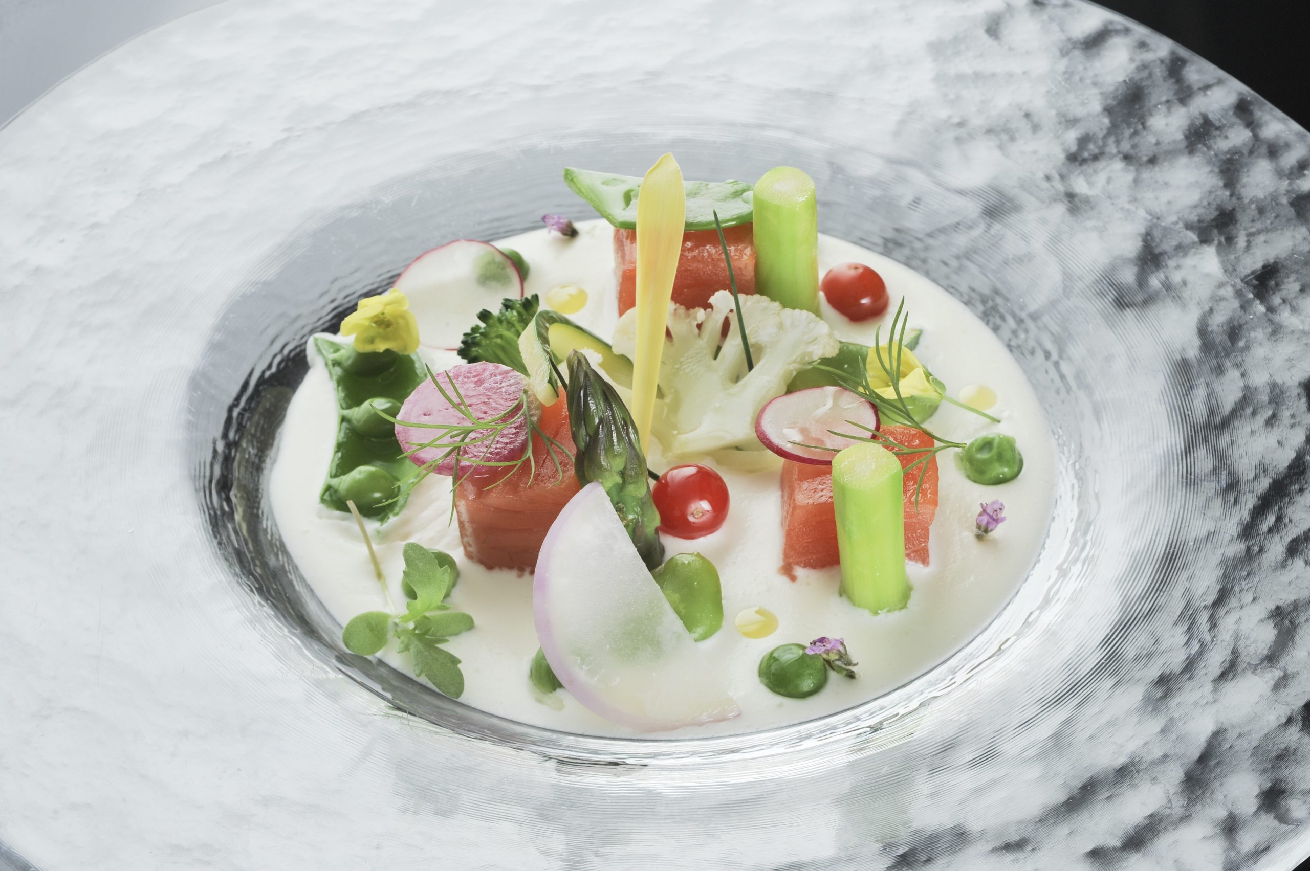 サフラン風味のクラムのジュとフロマージュブランのエッセンス