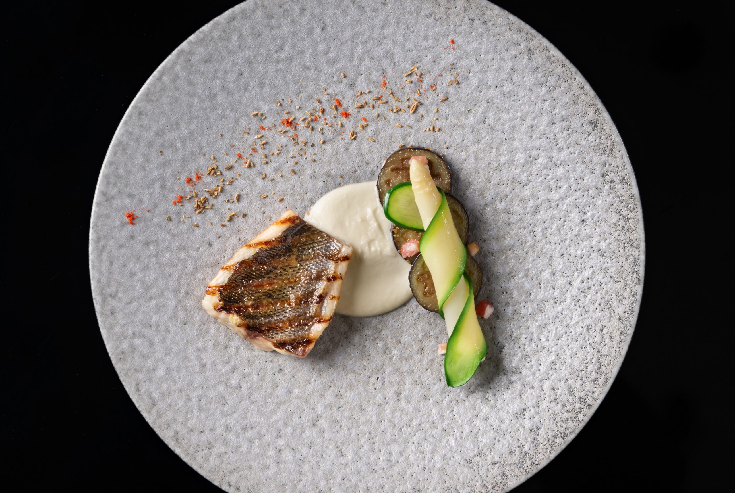 オリーブオイルでマリネしたマグロを繊細な火入れでグリル。