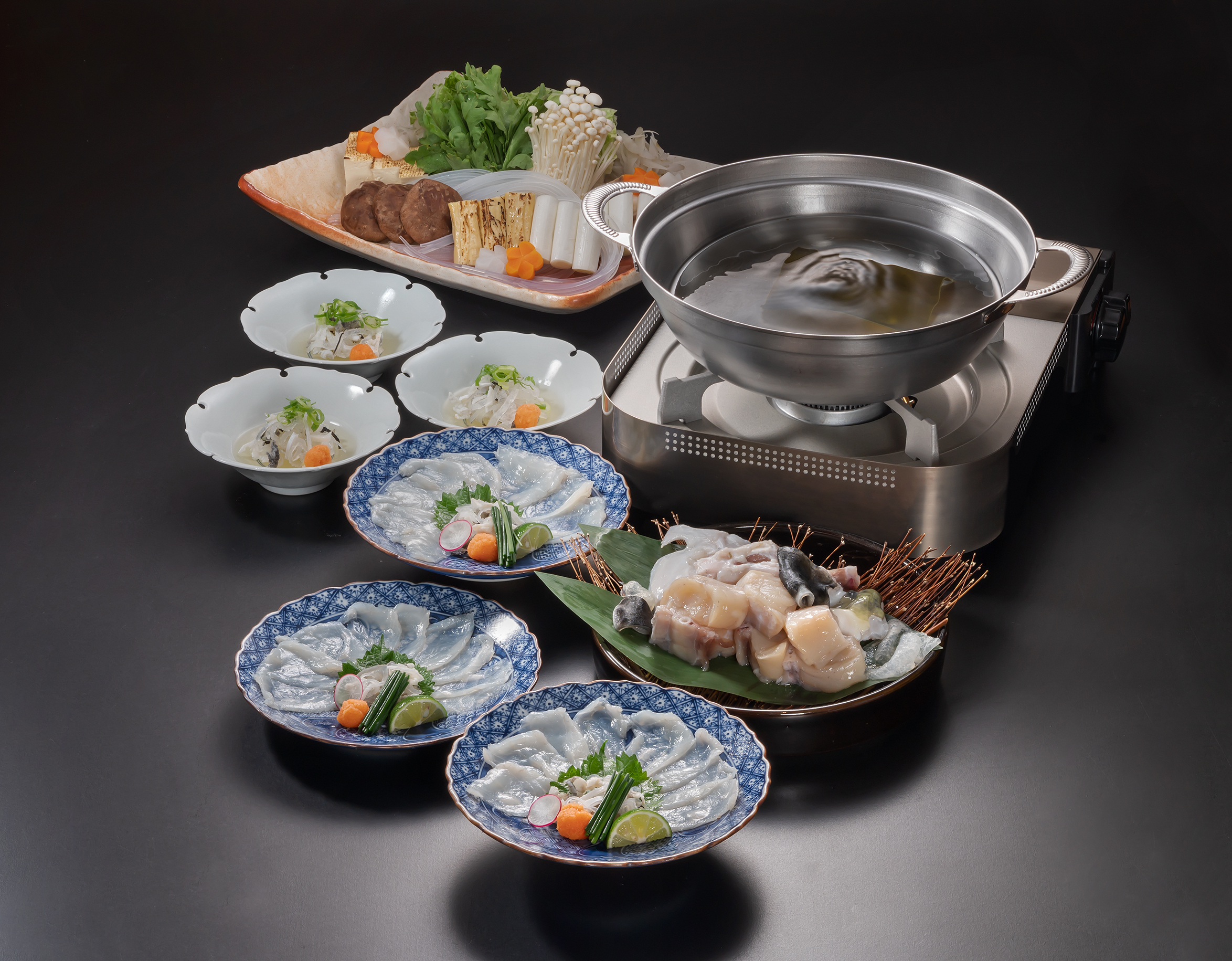 とらふぐを使用した御造り、味わい豊かなとらふぐと北海道産の昆布のお出汁を生かした河豚鍋を余すことなくご堪能ください。
