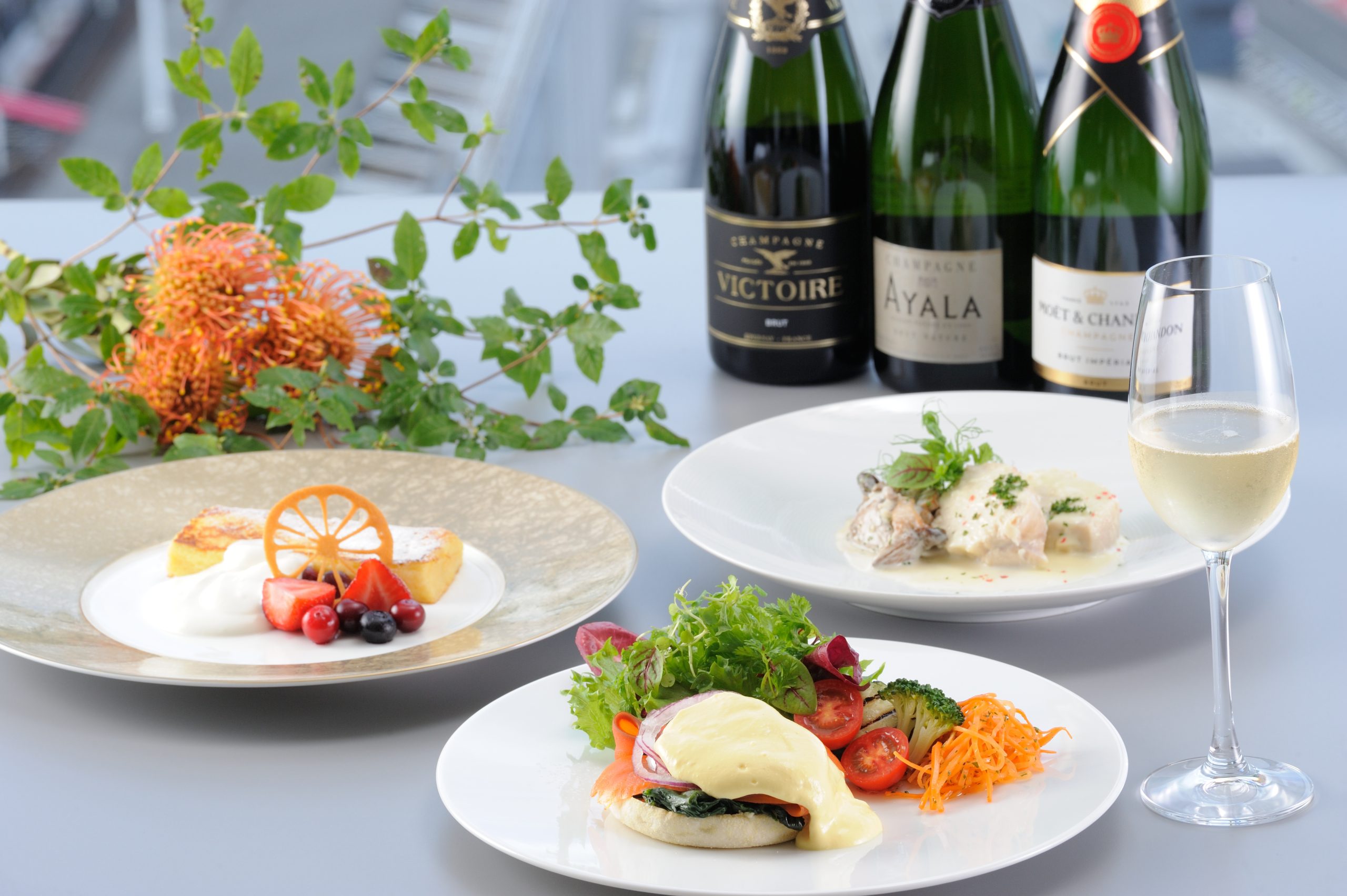 週末の朝はゆっくりと起床し、お料理とシャンパンのマリアージュをホテル最上階の景色とともにお楽しみください。