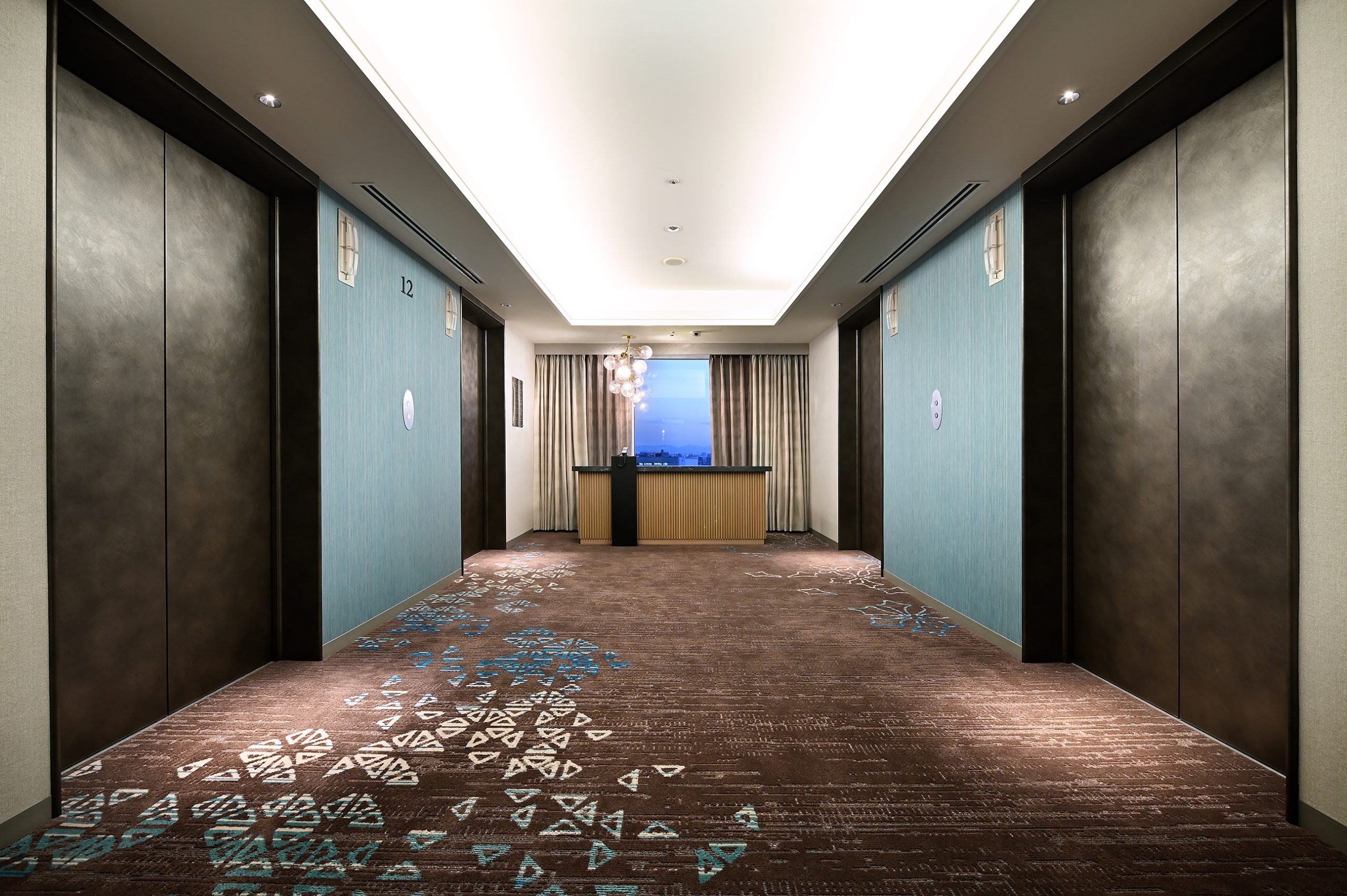 そこから続く廊下と客室には日本三名園「後楽園」の四季をイメージしたカーペットが広がり、